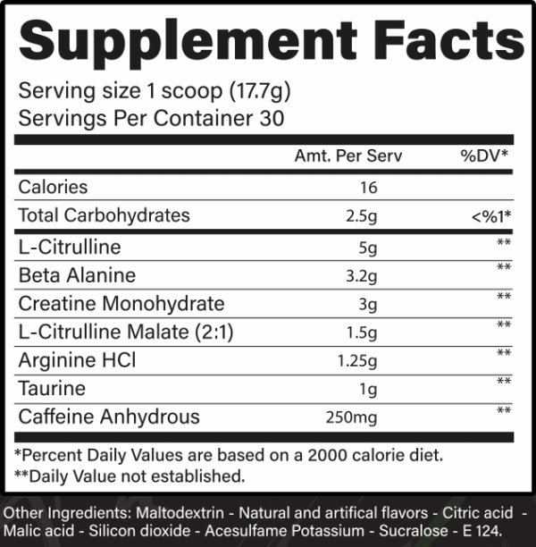 يتميز المنتج بطعم Fruit Punch اللذيذ وسهولة الذوبان، مع 30 جرعة تمنحك طاقة ثابتة وتركيز عالي في كل تمرينة.