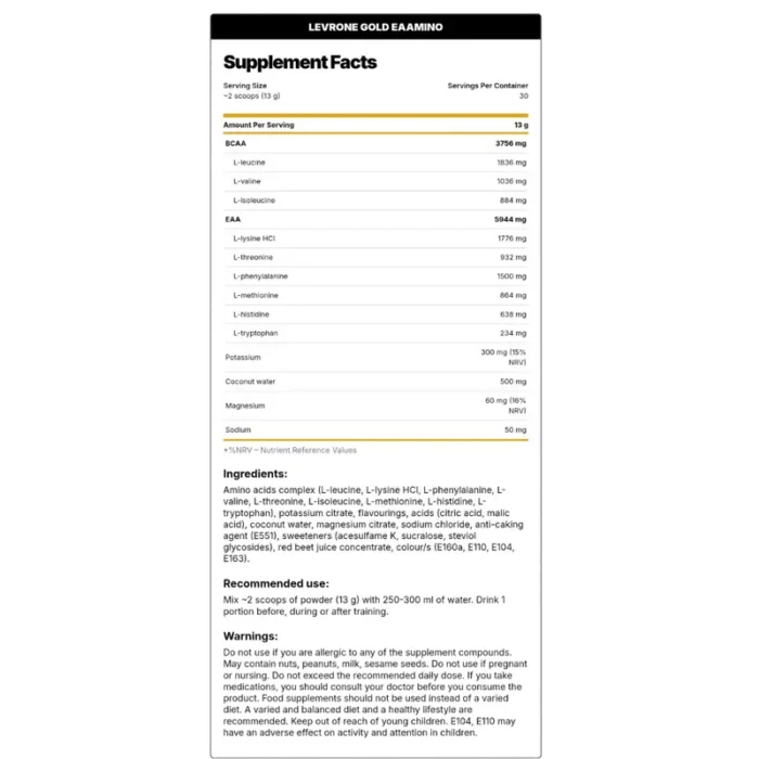 مما يعزز من قدرة الجسم على التكيف مع التدريب المكثف. يعتبر ليفرون جولد إي أمينو الخيار المثالي للأشخاص الذين يسعون لبناء العضلات وتحسين الأداء الرياضي دون أي دهون أو سكريات إضافية