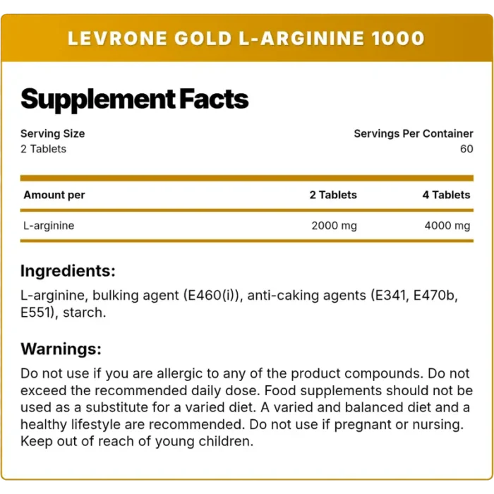 الارجنين من كيفن ليفرون الخط الذهبي. يحتوي على اكسيد النتريك الذي يقوم بدوره بتوسيع الأوعية الدموية